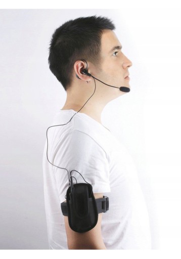 Dla dodatkowego zabezpieczenia i wygody, nadajniki umieszcza się w pokrowcu, który zakłada się na ramię użytkownika.