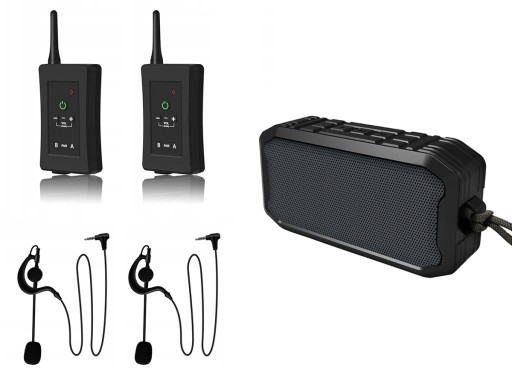 Cały system oparty jest na dwóch nadajnikach bezprzewodowych, które komunikują się między sobą. W skład zestawu wchodzi mikrofon nagłowny dla sprzedawcy oraz wodoodporny głośnik z mikrofonem zapewniający komunikację po stronie klienta.