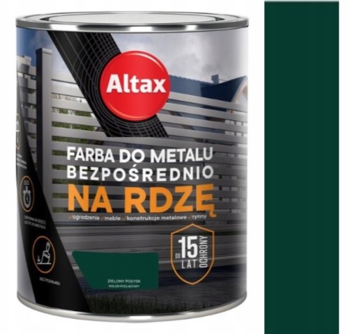 ALTAX FARBA DO METALU NA RDZĘ 0,75L ZIELONY POŁYSK