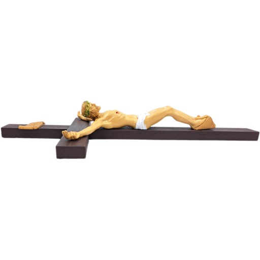 Wizerunek Jezusa na krzyżu został wykonany ze szczególnym namaszczeniem. Do krzyża przymocowane jest oczko, dzięki któremu bez najmniejszych problemów będziemy go mogli zawiesić w dowolnie wybranym przez nas miejscu.