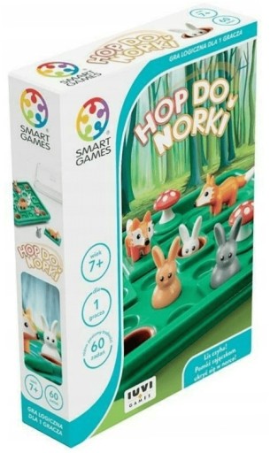 Hop do Norki to kolorowa i sympatyczna gra logiczna dla wszystkich miłośników królików. Dziecko korzystając z kolorowych elementów będzie mogło pomóc futrzastym maluchom w dotarciu do ich norek. Każde z 60 zadań rozwinie u małego gracza koncentrację i nieszablonowe myślenie, a przyjazna tematyka i bajkowe wykonanie dostarczą wielu godzin świetnej gry.Króliczki potrzebują Twojej pomocy, aby dotrzeć do swych norek. Czy pomożesz im w tym zadaniu?Nauka przez zabawę, to wspólna cecha wszystkich Smartów! Poznaj je już dziś!Za co Twoje dziecko pokocha tę grę? Można w nią zagrać wszędzie Kolorowe wykonanie Bo wszyscy kochają króliczki!W skład gry wchodzą: Przenośna plansza do gry z przykrywką 3 króliki 3 grzybki 2 lisy książeczka z 60 zadaniami i ich rozwiązaniami