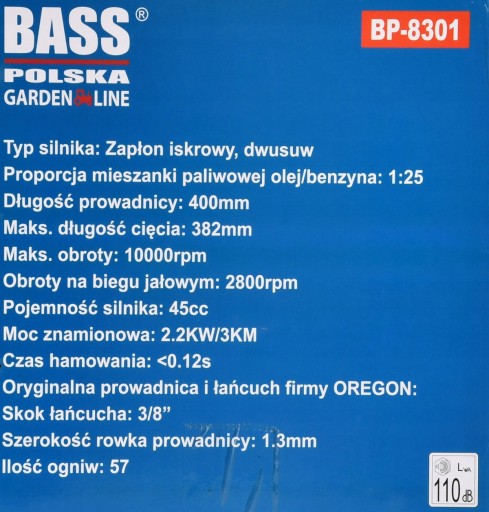 - Oryginalna prowadnica i łańcuch firmy BASS POLSKA