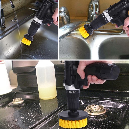 Zestaw do sprzątania składa się, aż z trzech szczotek czyszczących o różnym kształcie i różnych średnicach takich jak: 5, 8.5 i 10 cm, dzięki temu są bardzo praktyczne w zastosowaniu. Różnorodność końcówek sprawia, że pasują one do czyszczenia toalety, umywalki, kabiny prysznicowej oraz wanny. Końcówka o dużej średnicy sprawdzi się przy czyszczeniu podłóg, szafek, a także pokrowców lub tapicerki w aucie. Dzięki mniejszej końcówce wyczyścimy fugi oraz felgi samochodowe.