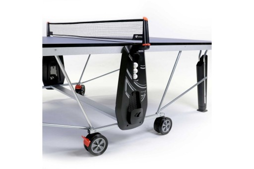 DUŻE KOŁA Z HAMULCAMI:Stoły ping pongowe Cornilleau posiadają duże podwójne koła. Takie rozwiązanie zwiększa toczenie kół oraz stabilność stołu. Z kolei dwa hamulce zapewniają doskonałą stabilność i bezpieczeństwo podczas gry. Jest to także szczególnie przydatne gdy stół jest przechowywany na lekko nierównej powierzchni.