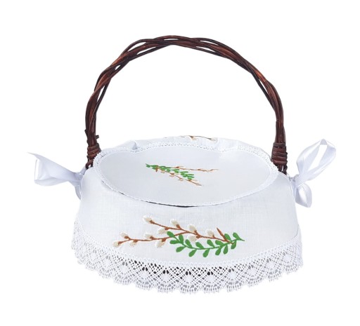 Haftowana serwetka do koszyczka z haftowanym wzorem wielkanocnym.