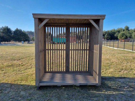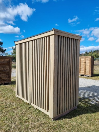 Drewutnia 2 x 1,1m, lamele pionowe, z dachem obwiedniowym prostym jednospadowym ( do tyłu)