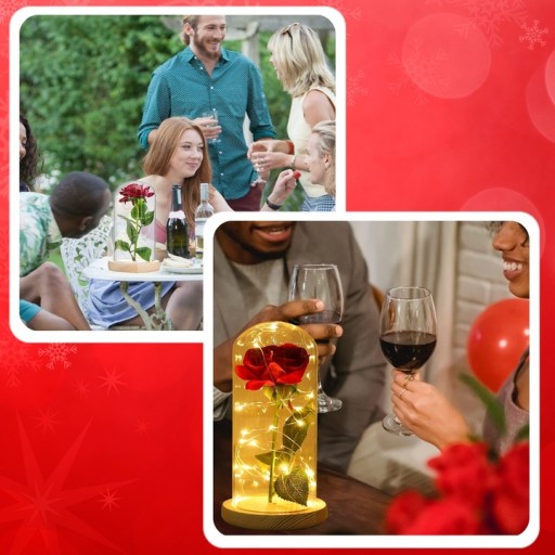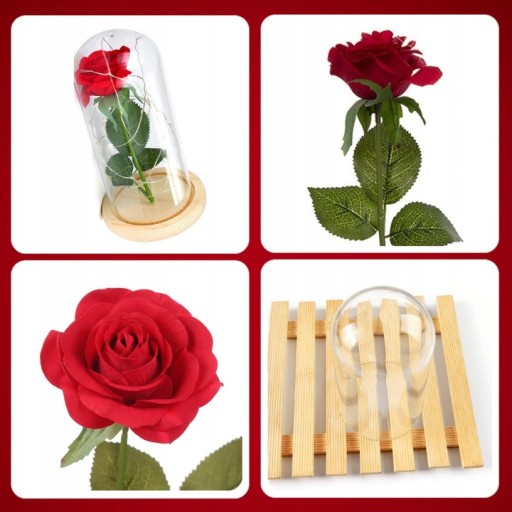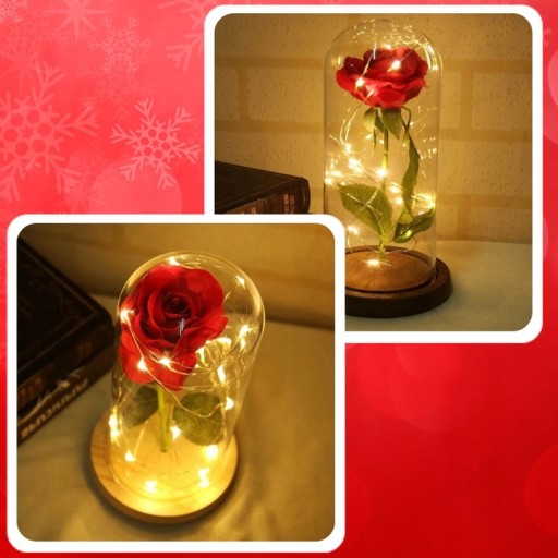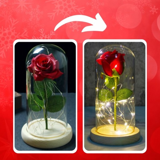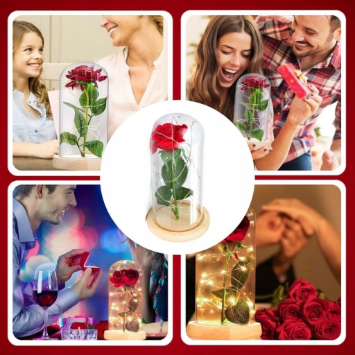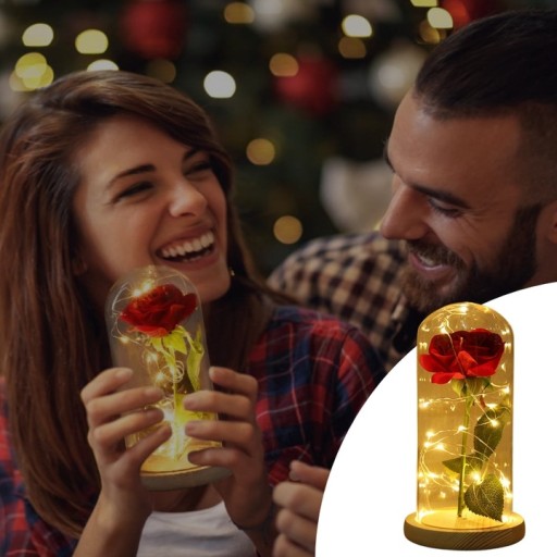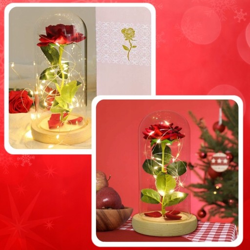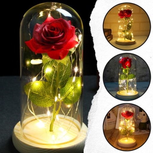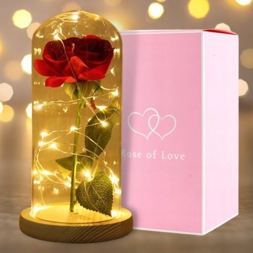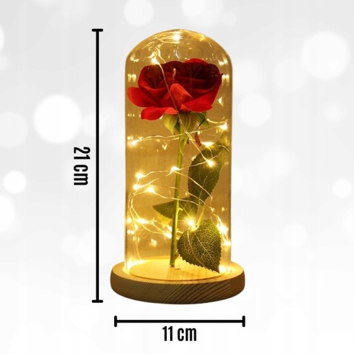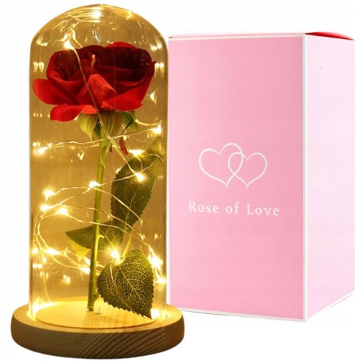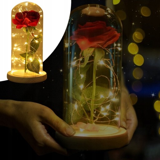 WIECZNA RÓŻA W SZKLE ŚWIECĄCA LED PREZENT PUDEŁKO NA DZIEŃ KOBIET
