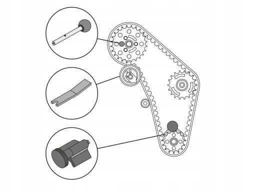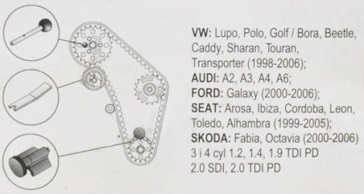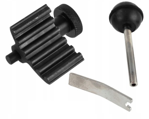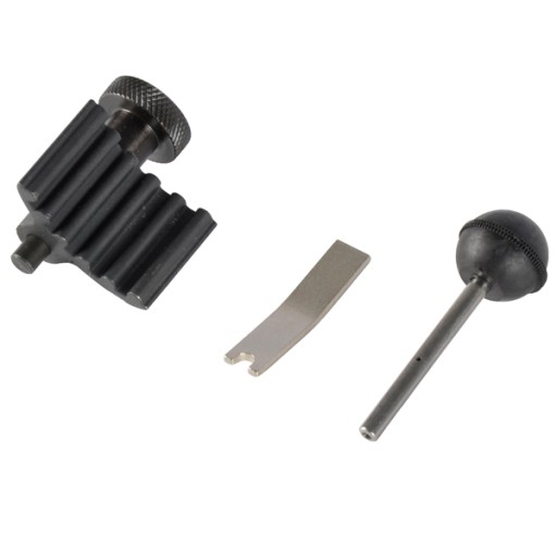Zestaw składa się z trzech blokad o specjalnej konstrukcji i kształcie. Blokady zostały wykonane ze stali węglowej, dodatkowo są chromowane lub oksydowane. Zestaw umożliwia unieruchomienie kół zębatych rozrządu w pozycji serwisowej podczas wymiany paska rozrządu. Blokady unieruchamiają koło zębate rozrządu i wału korbowego oraz koło napinacza paska. Zastosowanie: Silniki 1.2, 1.4, 1.9 TDI oraz 2.0 SDI i TDI w samochodach marki VW, Seat, Skoda, Audi oraz Ford Galaxy. Zawartość zestawu narzędzie do blokowania wału korbowego OEM T10050 śruba blokująca do pompy OEM 3359 płyta blokująca dla koła pasowego OEM T10008
