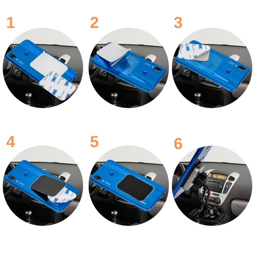 Blaszka metalowa stanowi element ,który przyklejamy do telefonu - magnesy uchwytu przywierają do blaszki trzymając mocno telefon.