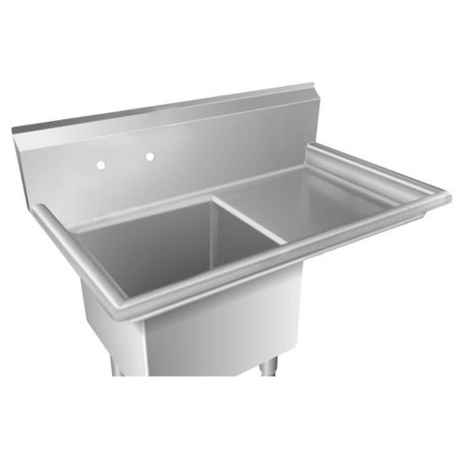 Głęboki zbiornik (300 mm) o zaokrąglonych rogach sprawia, że zlew nierdzewny jednokomorowy pomieści nie tylko zastawę stołową, ale także naczynia o większych gabarytach (np. garnki). Zbiornik pozwala na wygodne i dokładne mycie, płukanie lub dezynfekcję. Został on wyprofilowany w taki sposób, aby umożliwiać swobodne spływanie wody w kierunku syfonu.