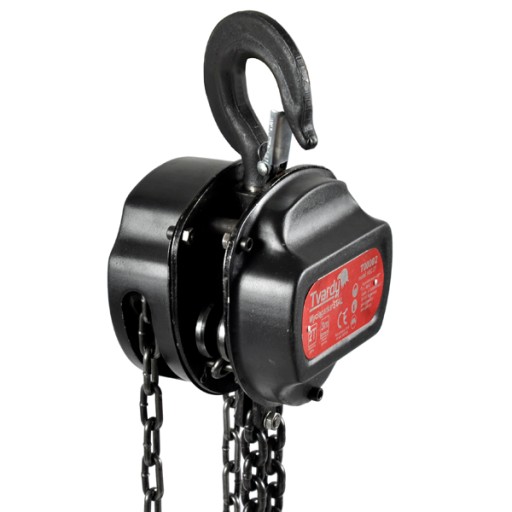 Profesjonalna wciągarka łańcuchowa 1000 kg 3 m TVARDY. Wydajna i wytrzymała wciągarka/wyciągarka łańcuchowa. Wyciągarka łańcuchowa jest urządzeniem służącym do podnoszenia ciężkich przedmiotów w płaszczyźnie pionowej. Znajdzie ona zastosowanie np. w wymontowywaniu silników spalinowych z aut osobowych. Cechy produktu Łańcuch w klasie G80 ze stali stopowej Bezpieczna w obsłudze i łatwa w konserwacji Udźwig: 1000 kg Długość łańcucha: 3 m Średnica drutu ogniw łańcucha: 6 mm Hak ze stali hartowanej Stalowy łańcuch Wysoka wydajność i wytrzymałość Lekka i łatwa do przenoszenia Certyfikat CE
