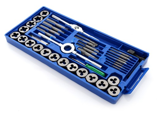 Zestaw narzynek i gwintowników 40 el. wykonany z wysokogatunkowej stali stopowej . Zestaw zapakowany został w poręczne pudełko wykonane z tworzywa sztucznego, które ułatwia przenoszenie narzynek oraz pozwala na utrzymanie porządku. Cechy produktu wykonany z wysokogatunkowej stali zapakowany w poręczne pudełko-przybornik grzebień do mierzenia gwintów w zestawie Elementy zestawu pokrętło do gwintowników pokrętło do gwintowników z uchwytem "T" oprawka regulowana do narzynek śrubokręt grzebień do mierzenia gwintów gwintowniki i narzynki o wymiarach: M3 x 0,5 M3 x 0,6 M4 x 0,7 M4 x 0,75 M5 x 0,8 M5 x 0,9 M6 x 0,75 M6 x 1,0 M7 x 0,75 M7 x 1,0 M8 x 1,0 M8 x 1,25 M10 x 1,25 M10 x 1,5 M12 x 1,5 M12 x 1,75 1/8NPT27