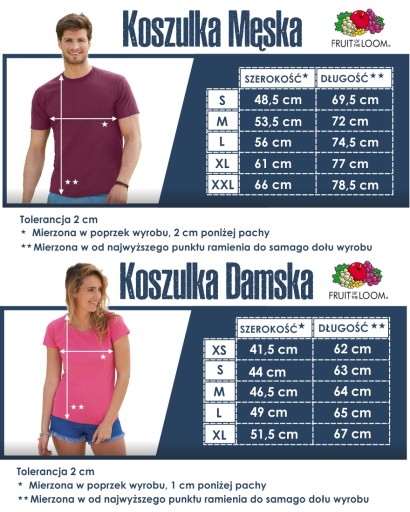 Napisz rozmiary koszulek (tabela poniżej) - w rubryce "uwagi do zakupu".