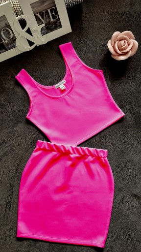 Spódniczki mini ołówkowej + krótkiego topu na ramiączkach.