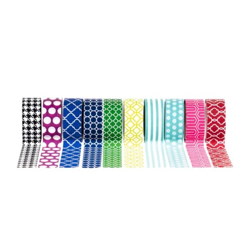 Taśma samoprzylepna z wzorami STRIGODo wyboru masz aż 10 taśm - każda w innym wzorze i kolorze - od kropek, poprzez gwiazdki, aż po paski! Ozdabiaj co tylko wyobraźnia Ci podpowie: ramki na zdjęcia, opakowania prezentowe, pudełka na biżuterię, pamiętnik czy pocztówki! Taśmy idealnie nadadzą się również do decoupage'u.