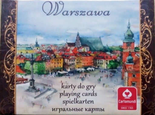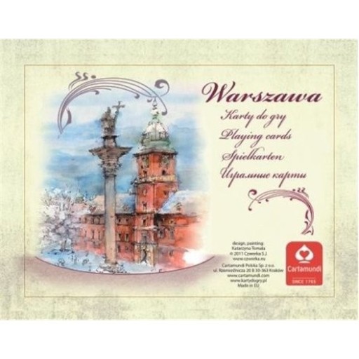 Karty z artystycznymi akwarelami przedstawiającymi polskie miasto. Komplet dwóch talii - 2x55 kart.