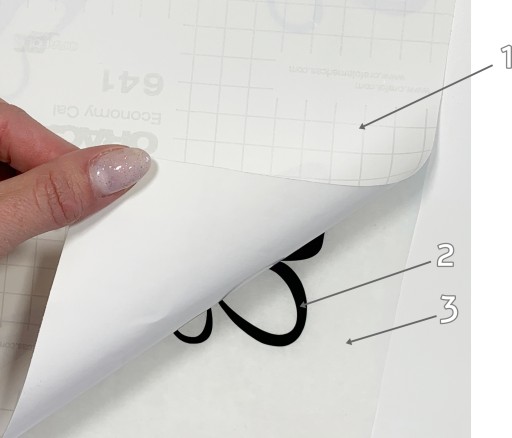 1️⃣Przed montażem wygładź płaskim narzędziem naklejkę, aby po odklejeniu papieru podkładowego naklejka została na papierze transportowym