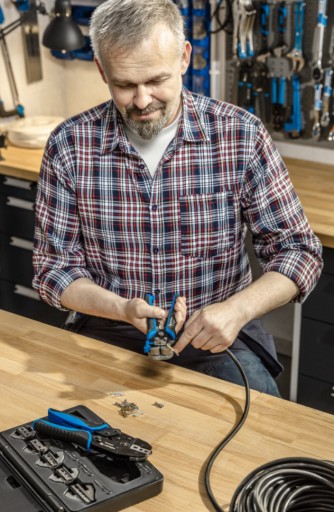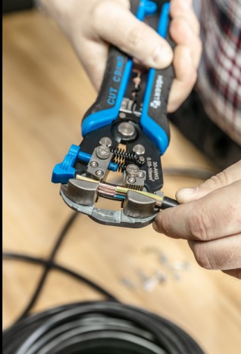 Szczypce automatyczne do ściągania izolacji z przewodów jedno- i wielożyłowych, wykorzystywane przy pracach instalacyjnych i montażowych.