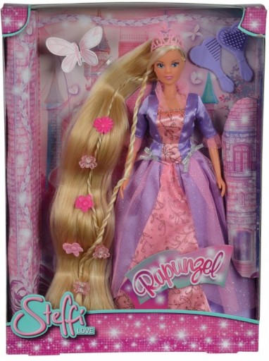 Steffi, zgodnie z bajką o Roszpunce zamkniętej w wieży i uwolnionej przez księcia, ma bardzo długie blond włosy. Wielką frajdą dla dziewczynki będzie czesanie i ozdabianie włosów lalki przy pomocy dołączonych gadżetów.