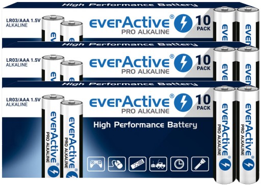 Cechy produktu 10 x baterie alkaliczne AAA / LR03 everActive Pro Alkaline (kartonik)
