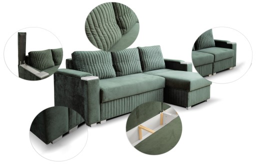 - ✅ mebel wypełniony pianką o podwyższonej gęstości T30siedzisko i oparcie narożnika-kanapy amortyzowane jest sprężynami bonelowymi