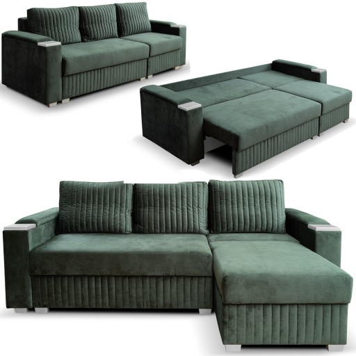 ⭐ PRZEDSTAWIAMY KANAPĘ, KTÓRA JEST JEDNOCZEŚNIE NAROŻNIKIEM Z FUNKCJĄ SPANIA Z POJEMNIKIEM NA POŚCIEL + POSIADA DODATKOWE SCHOWKI W PODŁOKIETNIKACH