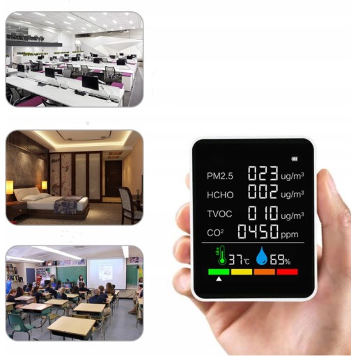 Termohigrometr z funkcjami detektorów gazów (CO2, HCHO, TVOC) sprawdzi się w każdym pomieszczeniu. Jest pomocny w dbaniu o twoje samopoczucie oraz zdrowie. Posiada również wbudowany termometr oraz wilgotnościomierz.