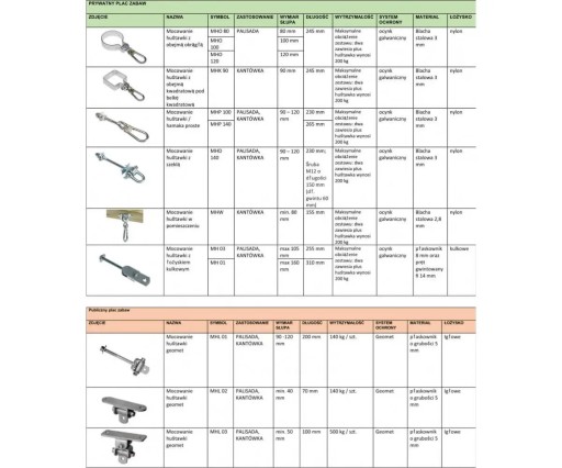 Zawiesia spełniają normę PN-EN 1176, dzięki czemu nadają się na publicznie place zabaw. Oczywiście świetnie sprawdzą się także na przydomowej huśtawce.