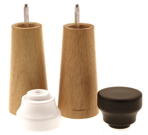 2 - elementowy zestaw zawiera dwa młynki do pieprzu i soli. Wykonane z drewna kauczukowego.