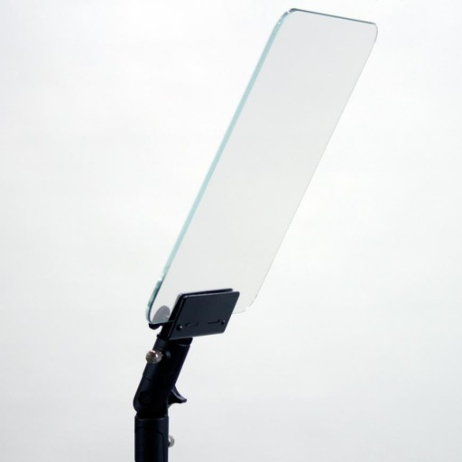 - Szybę promptera typu beamsplitter z zaokrąglonymi rogami (23 x 28 cm)