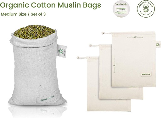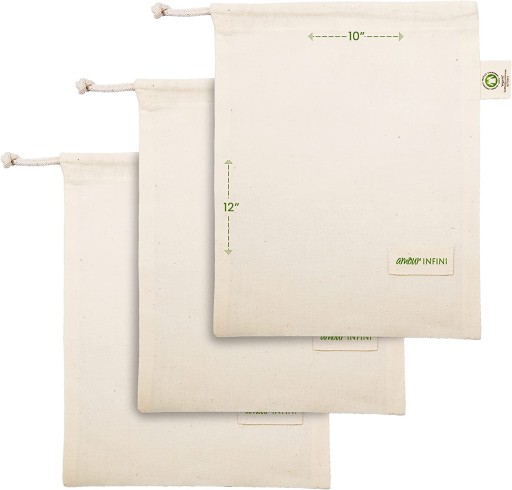 Możesz przechowywać owoce i warzywa w torbie prosto do lodówki. Nasze torby są wykonane z oddychającego materiału, dzięki czemu owoce i warzywa zachowują świeżość dłużej niż plastikowe torby. Zamień torby na płócienne torby wykonane ze zrównoważonych materiałów i oszczędzaj ziemię, zmniejszając zużycie polietylenu. Idealny do kupowania przypraw, orzechów i warzyw