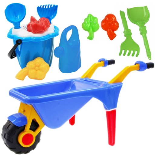 ZESTAW TACZKA DLA DZIECI + ZESTAW DO PIASKU + KONEWKA + ŁOPATKA + FOREMKI