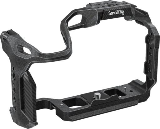 Klatka posiada również zintegrowaną płytkę w stylu Arca na spodzie do montażu statywu.