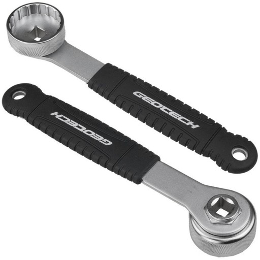 Klucz marki Geotech przeznaczony do suportu Shimano Hollowtech II centerlock i podobnych. Może być wykorzystany również do montażu i demontażu tarcz hamulcowych na piastach Center Lock. Klucz posiada gumową rękojeść która zapewnia komfort i wygodę podczas użytkowania.