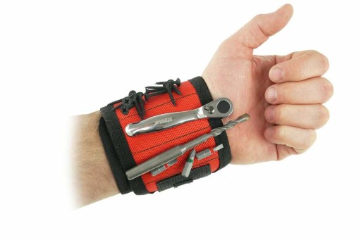 To poręczne akcesorium do prac w których nie mamy łatwego dostępu do skrzynki narzędziowej lub kabury. Materiał z którego wykonano opaskę to poliestrowa tkanina 1680D o splocie typu Oxford, gwarantuję wysoką odporność na przetarcia. W opaskę wszyte zostały 3 silne magnesy neodymowe N38 - dzięki nim drobne metalowe przedmioty takie jak bity, śruby, gwoździe, itp są zawsze w bezpośrednim zasięgu ręki. Opaska posiada regulację na rzep, umożliwia to dostosowanie opaski do każdego rozmiaru przedramienia i nadgarstka. Siateczkowa tkanina w podszyciu zapewnia komfort pracy przez wiele godzin.