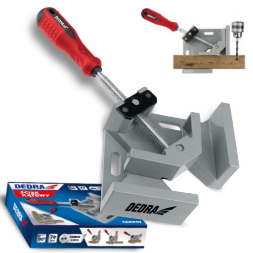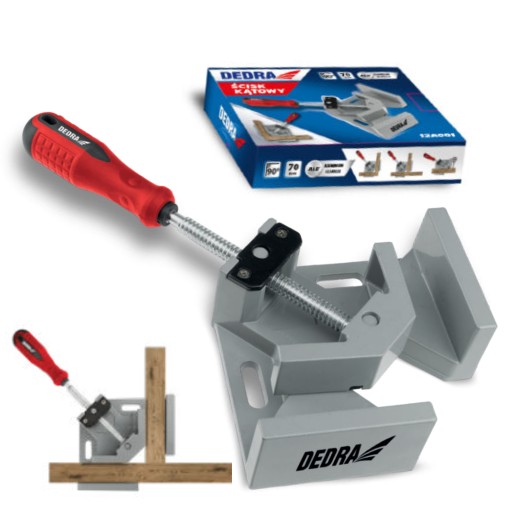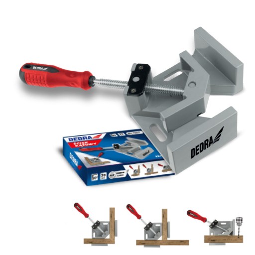 Ścisk kątowy to przydatne narzędzie, które możesz wykorzystać w przydomowym warsztacie. Dzięki specjalnemu kształtowi ułatwi Ci obróbkę rozmaitych materiałów, które musisz połączyć tworząc narożnik np. łączenie ramy obrazu, produkcja i montaż mebli, pudełek decoupage. Dzięki zastosowaniu stopu aluminium ścisk jest lekki i wytrzymalszy niż ściski z tworzywa. Przeznaczony do kątów wewnętrznych.