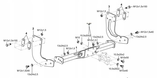 -Zestaw śrub lub ewentualnych tulejek do montażu (wszystko co jest potrzebne by zamontować hak);