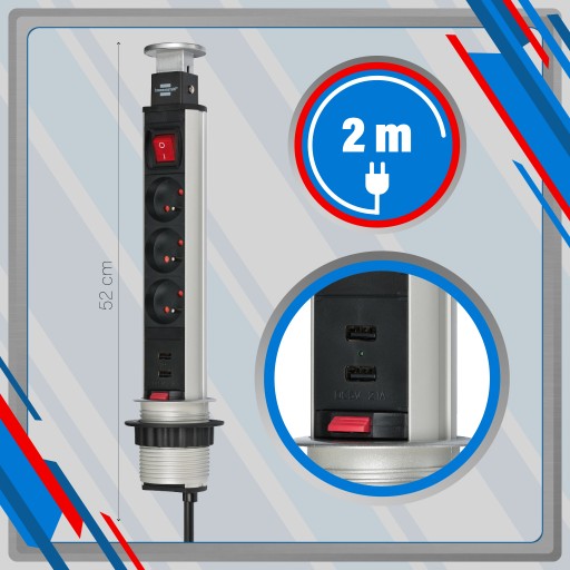 Listwa zasilająca biurkowa kolumna z ładowarką USB