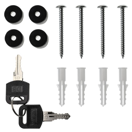 ✔ Kołki rozporowe ze śrubami do montażu (4 szt.) oraz dwa klucze w zestawie.