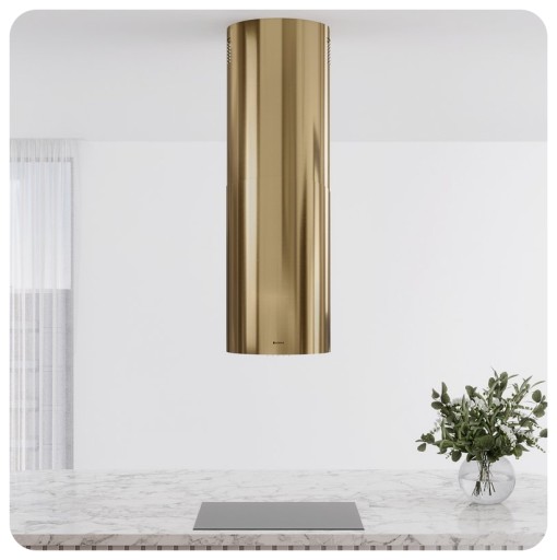 Okap Lobelio Carmel Gold wykończony jest w eleganckim złotym odcieniu. Ulokowany nad wyspą kuchenną dopełni aranżację. Sprawdzi się znakomicie w nowoczesnych wnętrzach inspirowanych najnowszymi trendami, jak również w miejscach, gdzie dominuje klasyczna elegancja.