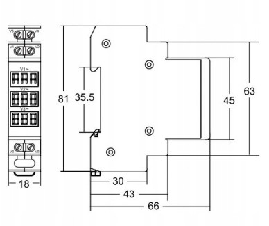 - Montaż: na szynę DIN EN60715 35 mm (na zacisk).