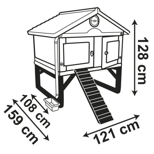 - drabinka do wchodzenia, 4 drzwi, które można zamknąć na noc, grzęda