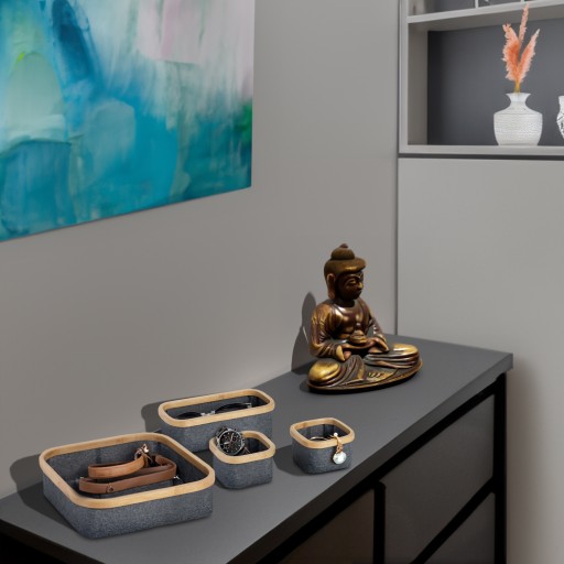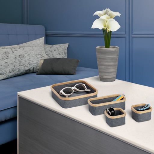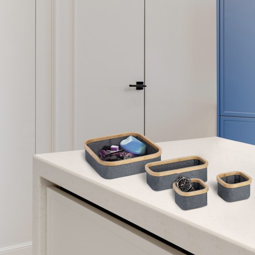 Organizer do Przechowywania na Biurko do Szafy 4 Pudełka Bambusowe Szary