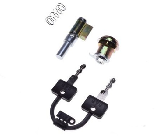 OPIS: ORYGINALNY ZESTAW ZAMKÓW BLOKADY KIEROWNICY ORAZ POKRYWY BOCZNEJ PRZEZNACZONY DO MOTOROWERÓW SIMSON S51. PRODUKCJA NIEMCY. W KOMPLECIE ZNAJDUJĄ SIĘ 2 ZAMKI ORAZ 2 KLUCZYKI.