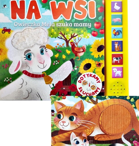 - Ciekawym rozwiązaniem i dodatkową atrakcją książeczki dźwiękowej są FUTERKOWE WKŁADKI, które pozwalają na pogłaskanie zwierzątek.