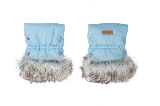 To niezbędnik na każdy spacer z maluszkiem. Mufki ochronne nie są ze sobą połączone. W parze każda sztuka jest niezależna od siebie. To jest duża zaleta, ponieważ nie ograniczają ruchów dłoni po rączkach wózka lub sanek - co daje duży komfort prowadzenia. Mufki z zewnątrz wyprodukowane są z ortalionu typu PUMI, który jest wodoodporny i chroni ręce od wiatru. Wewnątrz rękawiczki wypełnione są przemiłym materiałem minki gładkie, oraz dodatkowo ocieplone puszystą włókniną antyalergiczną o gramaturze 200 gr/m2. Ozdobą mufek jest piękne srebrne futerko.