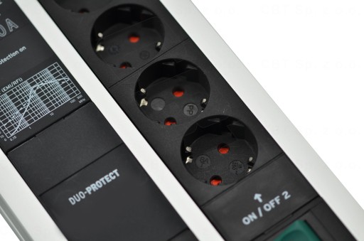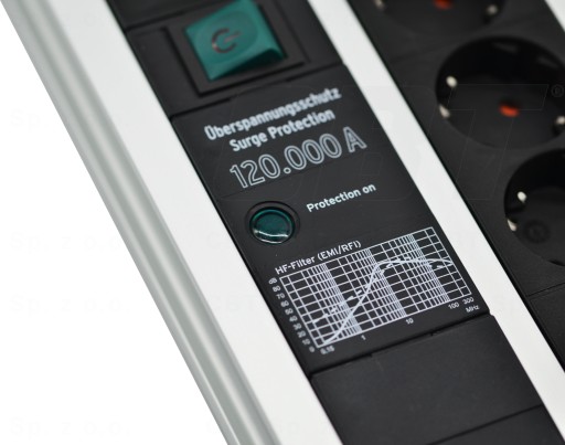 - Ochrona urządzeń przed zakłóceniami w sieci elektrycznej przepięciami, pośrednimi uderzeniami pioruna lub szumami w przewodach; maksymalna suma prądów upływowych o wartości do 120 000 A.