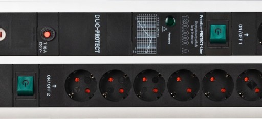 Rozwiązanie jest bardzo proste: Listwy zasilające z ochroną przepięciową i przystawką przepięciową.