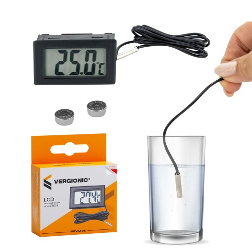 ✅ Termometr wyposażony w czytelny wyświetlacz LCD, zakończony sondą do pomiaru temperatury.