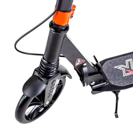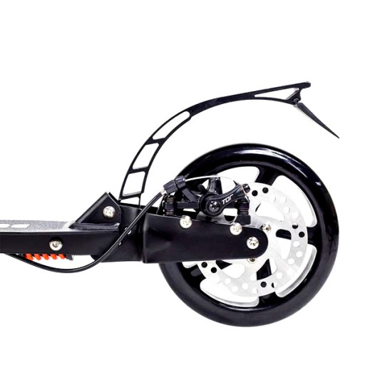 Hulajnoga posiada dodatkowy ręczny hamulec tarczowy umieszczony na tylnym kole. Dzięki niemu otrzymujemy dużo większą, niż w przypadku klasycznego nożnego hamulca, siłę hamowania. Umieszczenie go na kierownicy sprawia, że jest on dużo bardziej intuicyjny niż hamulec nożny, jest także dużo szybszy w użyciu.